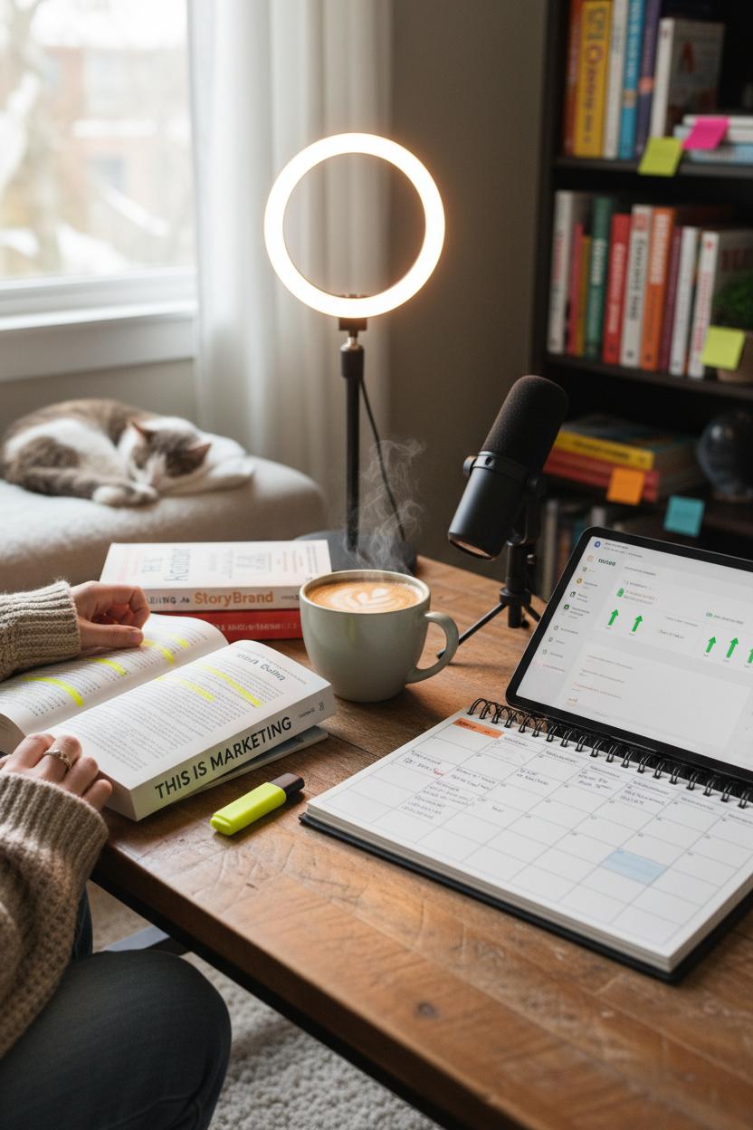 Make these ideas actionable with a cozy weekend ritual: a cup of coffee, a highlighter, and a fresh social media planner open beside a working content calendar. After each chapter, translate one insight into two small tests—one organic, one paid. Maybe it’s a StoryBrand‑inspired About page rewrite paired with a retargeting ad, or a Contagious‑style “social currency” hook tested in short‑form video. Film with a simple ring light and a USB microphone for clean, confidence‑boosting production, then measure the lift in saves, watch time, and email sign‑ups. Keep a lightweight log of hypotheses, results, and next steps so your learning compounds week by week. When you approach your reading like this—learn, build, test, refine—you’re not just consuming marketing books; you’re building a repeatable system for content marketing and social media strategy that fuels steady brand growth. By spring, you’ll have a bookshelf full of ideas, a calendar full of proof, and a digital media marketing engine that hums quietly in the background while you dream bigger for 2026.