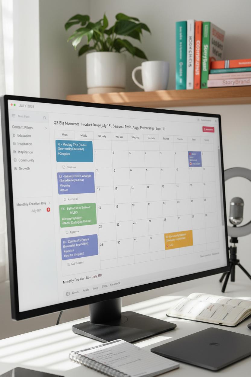 If you want your ideas to flow like a well-styled mood board, start by grounding your week in a content calendar and a trusty social media planner. Think of them as the gentle rails that keep your social media strategy on track when life gets busy. Map out the next quarter with your big moments—product drops, seasonal peaks, partnerships—then build around 3–5 content pillars that reflect what your audience cares about and what fuels brand growth. In 2026, digital media marketing moves fast, so block recurring “themes” (Monday tips, Wednesday behind-the-scenes, Friday community features) and sprinkle in real-time trends. Your calendar should hold more than dates; add post goals, channel notes, and tiny checkboxes for creatives, captions, links, and approvals so the whole workflow feels like a breeze.