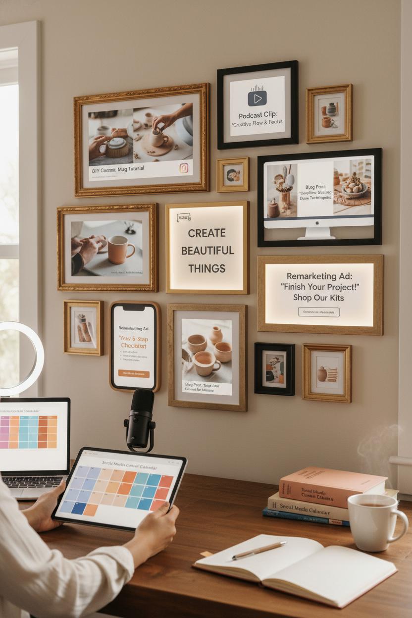 Now make it practical and pretty. Plan a monthly “creation day” and batch content: script a video, outline a carousel, draft an email, and storyboard a Reel—then repurpose one anchor idea across platforms for efficient content marketing. A ring light and a USB microphone instantly level up your polish, and a list of B‑roll shots (hands arranging products, morning desk ritual, packaging orders) makes editing faster later. If you love tactile tools, a printed social media planner beside your laptop keeps ideas top of mind; if you’re digital-first, color-code your content calendar by channel and format. Tie posts to outcomes—save-worthy education, shareable inspiration, click-worthy offers—and tag any pieces you plan to support with digital advertising so budgets and creative are aligned from the start. Keep a shelf (or folder) of marketing books to spark fresh angles on headlines, hooks, and storytelling when inspiration runs low.