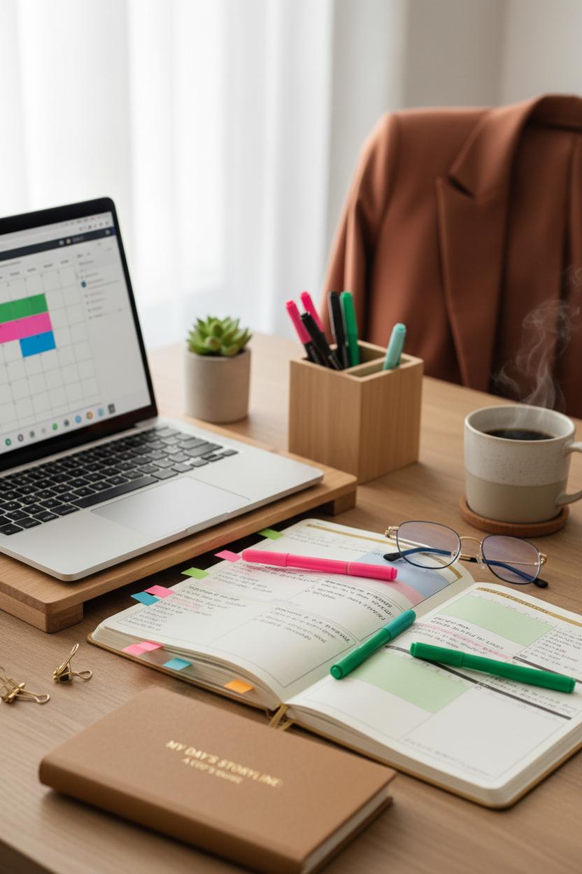 Make it tactile and inviting so you’ll return to it daily. Keep your productivity planner open on a laptop stand so it shares eye level with your screen; tuck pens and sticky flags into a tidy desk organizer so color-coding is effortless. If you’re working late, slip on blue light glasses to keep your focus crisp, and when it’s time to step out, a sharp women’s blazer becomes your cue to shift from builder to presenter without losing momentum. Protect your prime brain hours—mute notifications, set a timer, and honor the block like a meeting with your future self. Sprinkle in buffer time and a mini “parking lot” for ideas that pop up mid-focus. At day’s end, review your blocks, celebrate three wins, and move what’s left—guilt-free—into tomorrow’s plan. These tiny rituals are more than tidy to-dos; they’re evergreen career tips that compound into clarity, confidence, and results. Start with two focused blocks today, add one more tomorrow, and watch the week rearrange itself around your priorities—not the other way around.
