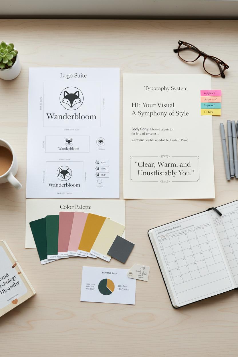Before you post another story or send another email, give your visuals a cozy home. Start with your logo suite—the signature of your brand communication. Think beyond one mark: a primary logo for big moments, a horizontal or stacked alternate for tight spaces, and a tiny submark or favicon for avatars and watermarks. Create simple rules for clear space, minimum sizes, and where each version shines (website header, packaging, reels cover, email footer). Save files in every format you’ll need (SVG for crisp screens, PNG with transparency, print-ready PDFs). These small, steady decisions are branding tips that turn scattered assets into a visual system—and they anchor your brand voice just as clearly as your words do within your larger brand strategy.