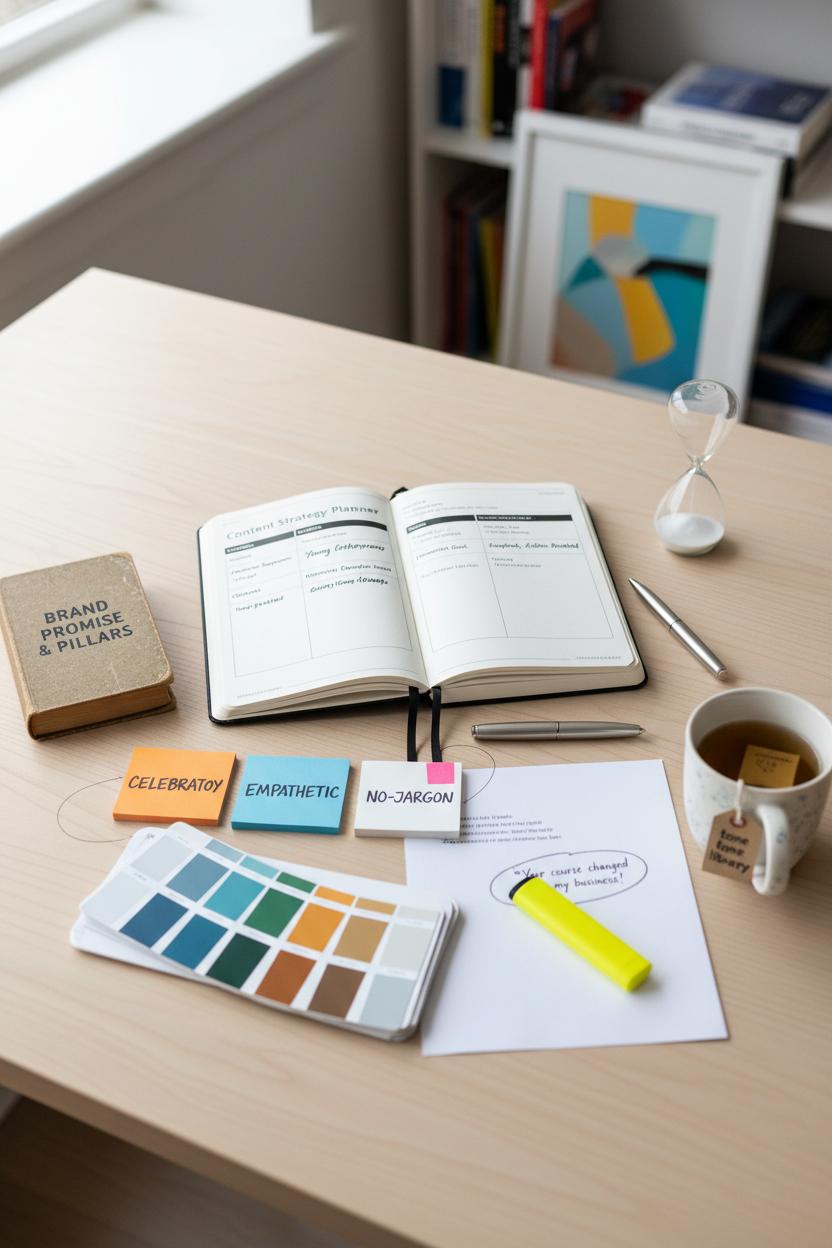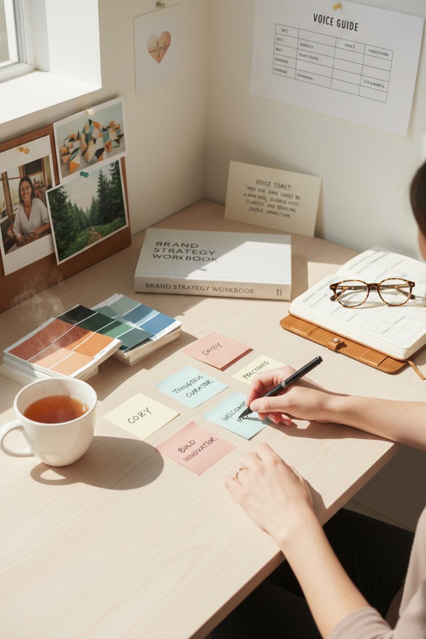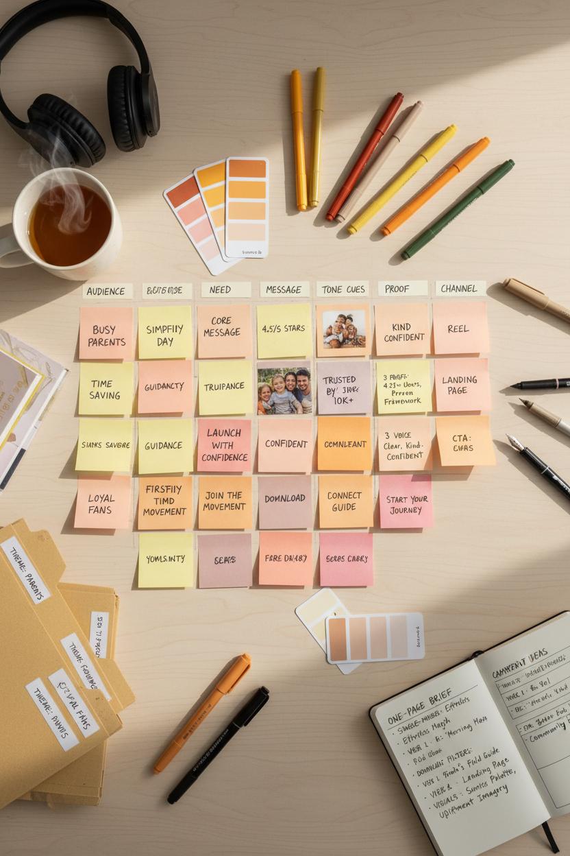 Begin with a little ritual: clear a patch of table, gather your favorite pens, a sticky notes set in sunrise colors, and those color swatch cards that match your palette. Put on a cozy playlist, brew something warm, and set one intention—turn brainstorm sparks into a clean, confident brief. In this moment, you’re not chasing perfection; you’re sorting patterns. Write your brand strategy pillars on big notes—what you promise, how you prove it, and how you make people feel. Then add smaller notes for audience types, their pains and dreams, and the words they already use. The magic of brand communication starts here, where warm ink meets paper and your brand voice begins to sound like a person you’d actually want to talk to.