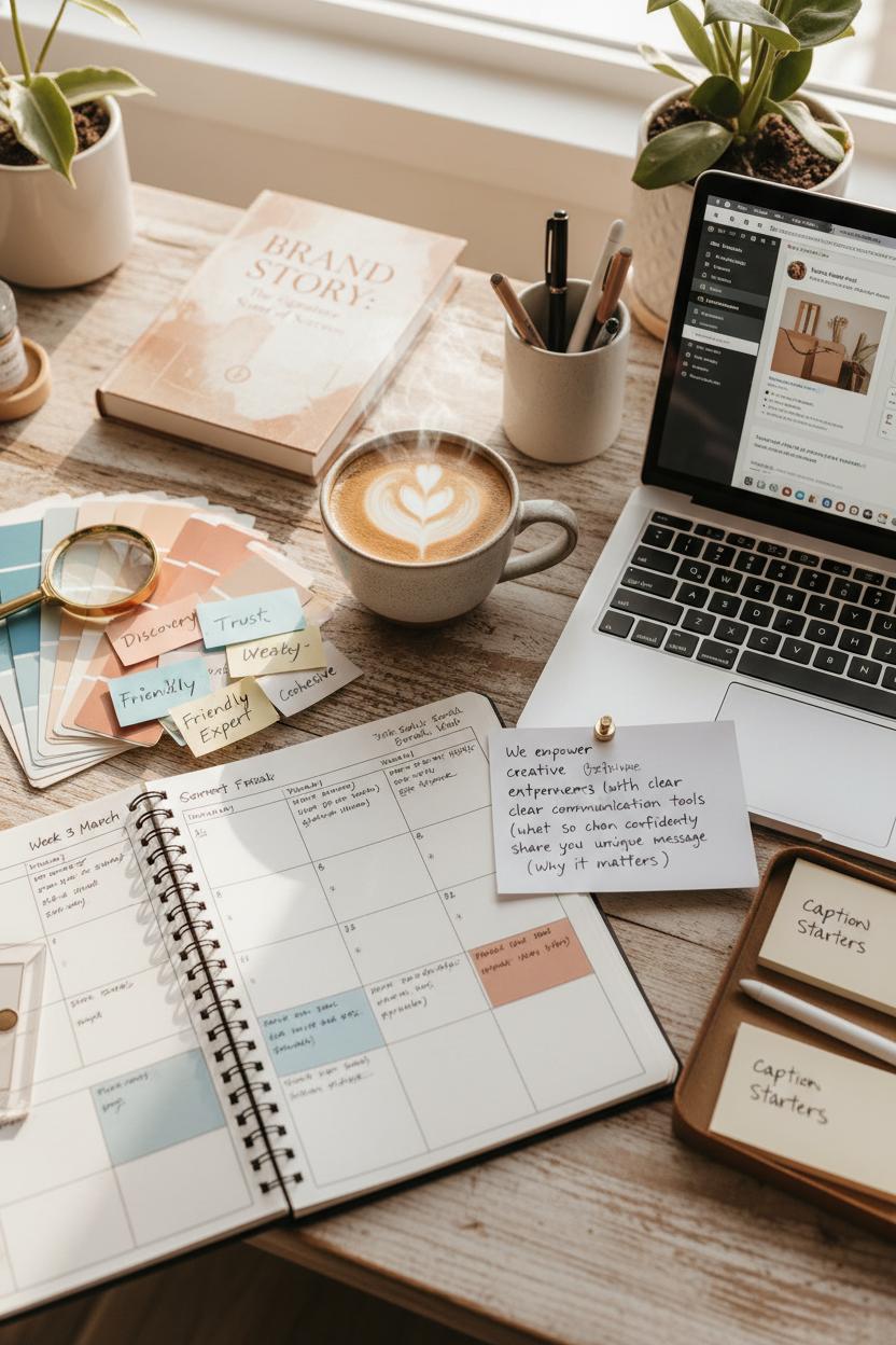 Picture your desk: a mug of something warm, a neat row of color swatch cards, a content strategy planner open to the week, a cheerful sticky notes set sprinkled with ideas, and your favorite brand strategy book within reach. That cozy setup is your command center for clear brand communication. Start by defining three channel goals—social for discovery and conversation, email for depth and conversion, web for trust and clarity—then thread the same brand voice through each touchpoint like a signature scent. Keep a simple brand strategy one-liner nearby (who you serve, what you promise, why it matters) and let it guide captions, headlines, and calls-to-action so everything feels like it came from the same, confident place.