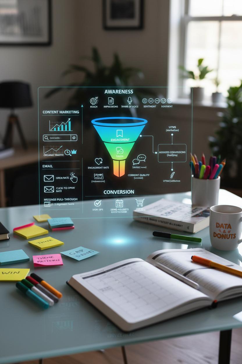 For content marketing, measure momentum over moments. Track organic traffic to cornerstone posts, rankings for priority topics, and dwell time on guides and how-tos. In email, open rate is a hello; click-to-open rate is a conversation. Build a simple “message pull-through” check: did each piece hit a core pillar and keep tone consistent? A quick 1–5 brand voice alignment score during reviews keeps quality high. Quarterly, do a cozy audit day: spread a sticky notes set across your wall, cluster wins and gaps by theme, and mark patterns with color swatch cards. A content strategy planner keeps KPIs beside your editorial calendar, and a favorite brand strategy book can offer frameworks for picking what to track at each stage. Keep your desk accessories stocked so the process actually feels fun.