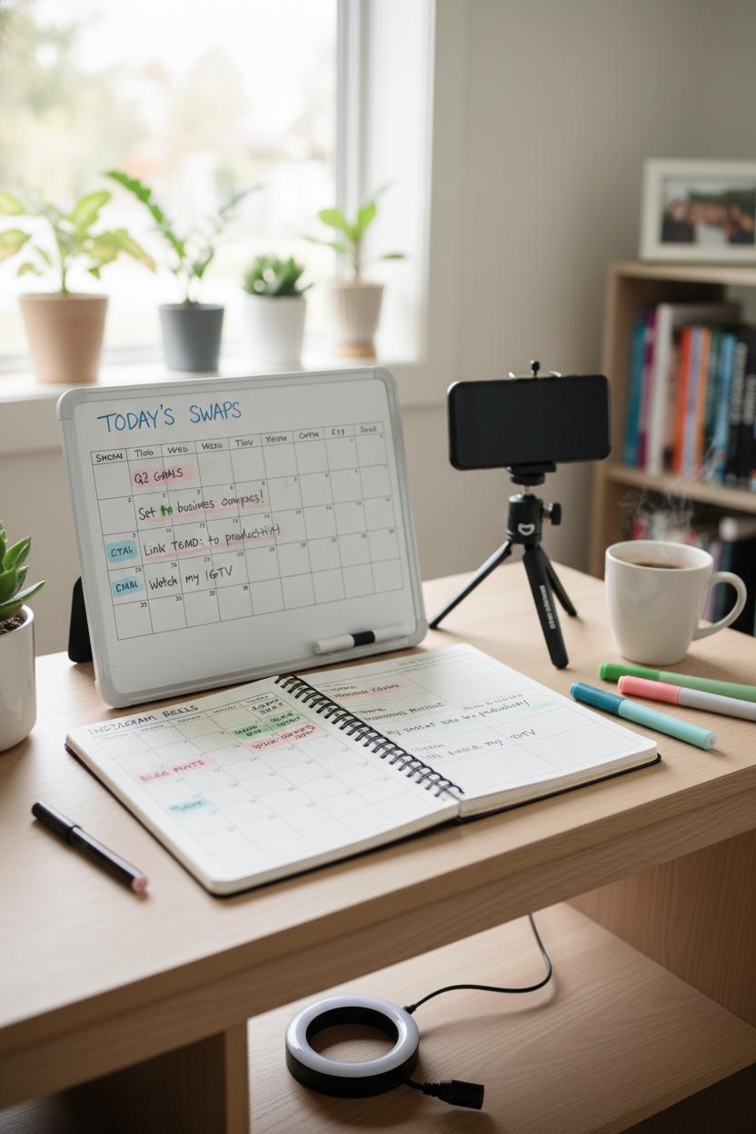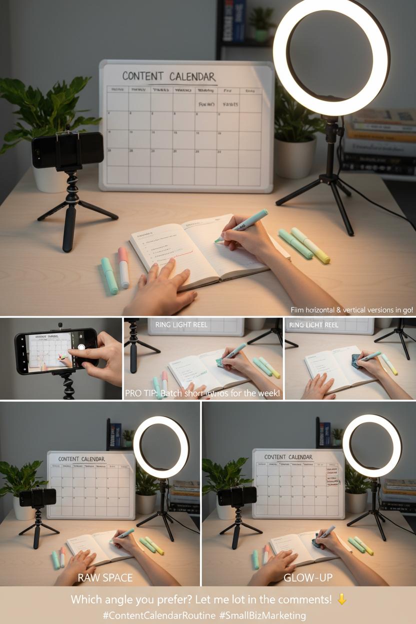 Set yourself up for easy batching. Prop your phone on a smartphone tripod, click on a ring light for clean, bright footage, and tidy your background so the focus is on the demo. Jot your beats in a content planner notebook: a snappy hook, three steps on-screen, and a call to action like “Save this for your next posting day” or “Tag a friend who needs this.” Aim for three crisp cuts and one over-the-shoulder clip to keep the pace snappy. If you’re a visual organizer, keep a desk whiteboard calendar nearby for a quick glance at what you’re filming this week, and color-code ideas with pastel highlighters so you can see at a glance which ones are tutorials, behind-the-scenes, or promos. Repurpose the tutorial into a carousel with step-by-step frames, expand it into a blog with extra content marketing tips, and pin the video to the top of your profile. When your audience starts commenting “saving this,” reply with a bonus pointer to deepen engagement. Finally, add it to your ongoing content calendar as a weekly series—your future self will thank you, and so will the metrics.