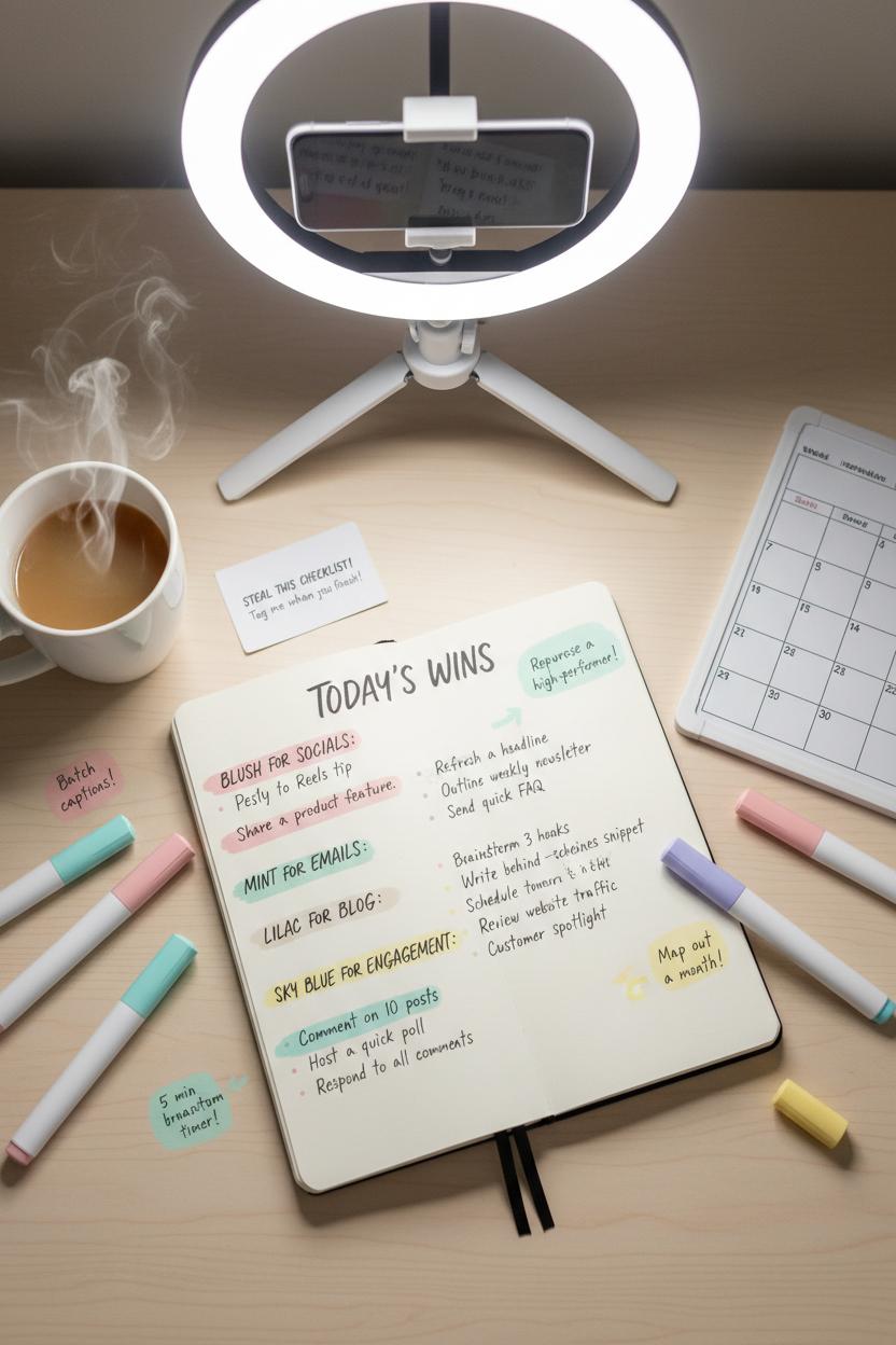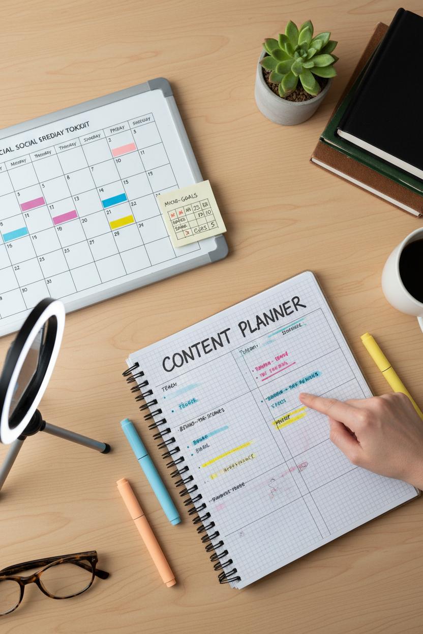 The secret isn’t posting more—it’s posting with intention. With a cozy toolkit (content planner notebook, desk whiteboard calendar, pastel highlighters) and a simple system, your social media content becomes a steady drumbeat that attracts, teaches, and sells—no overwhelm required.