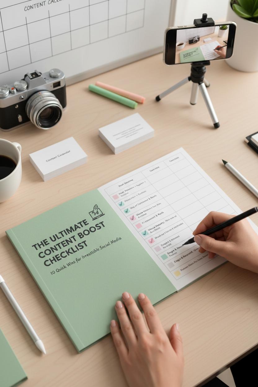 Production can be simple and pretty. Film a 10–15 second vertical video under a ring light with your smartphone tripod, flipping through printed pages on a clean background, or screen-record yourself highlighting one actionable tip. Use a warm, chatty caption formula: Problem (what your audience struggles with) → Peek (one page or tip) → Proof (a quick testimonial or stat) → Prompt (clear CTA: “Grab the full toolkit when you join my newsletter—link in bio”). Pepper in light content marketing tips to position your expertise, and add a deadline or bonus to spark action. On Pinterest and Reels, post the teaser as a vertical pin or short Reel; on Stories, add a countdown sticker; on LinkedIn, share a text snippet plus a sign-up link. Track clicks with UTM parameters and test two cover designs to see which hooks faster.