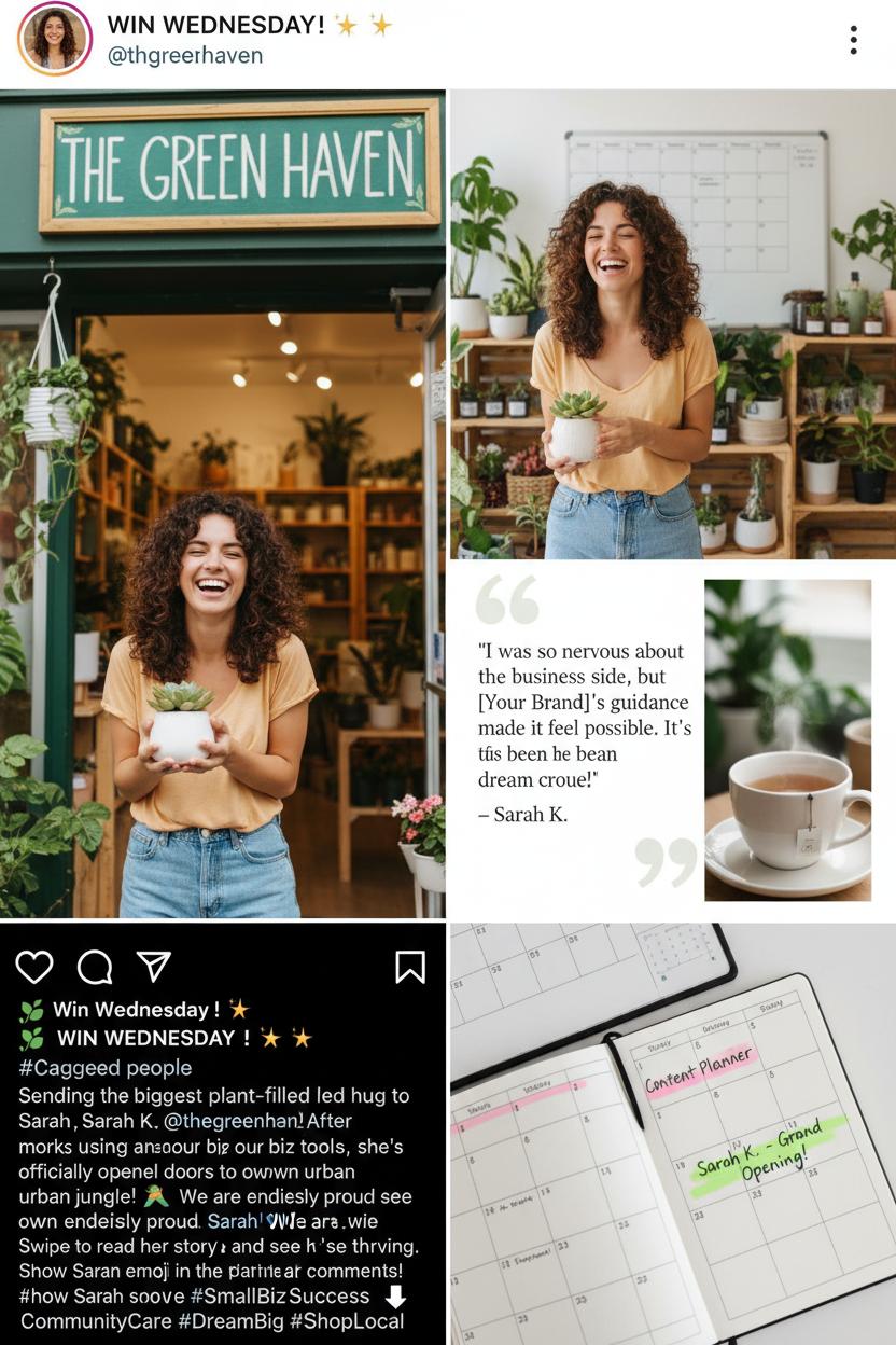 Make the capture effortless. Send a quick DM asking if they’re open to a shoutout and if you can tag them; offer to edit their selfie or clip for a cohesive look. If you’re filming in-house, a ring light and smartphone tripod turn a small corner into a glow-up studio in minutes. Keep backgrounds clean and cozy—plants, a textured throw, a steaming mug—and prompt the star: “What were you nervous about before working with us?” “What surprised you?” “What advice would you give someone one step behind you?” These prompts create authentic, saveable content and are classic content marketing tips that never feel salesy. Pair the visuals with warm, descriptive captions, sprinkle in a gentle call to celebrate them in the comments, and don’t forget alt text for accessibility.