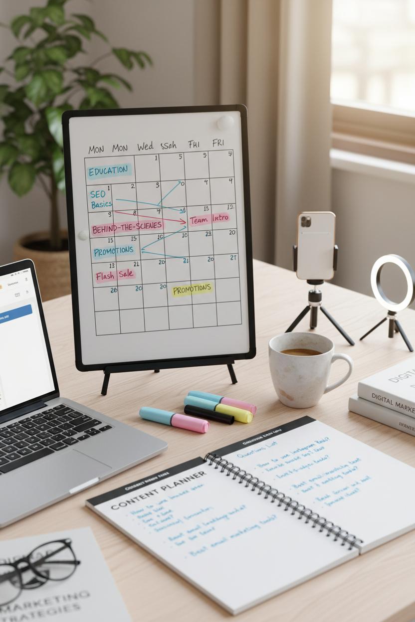 Running out of social media content? Dive into 30 digital marketing content ideas you can post today—perfect for small business marketing and busy creators. From quick wins to evergreen prompts, you’ll get content marketing tips that plug straight into your content calendar. Prep in minutes: grab your content planner notebook, sketch on a desk whiteboard calendar, and color-code with pastel highlighters. Filming? A ring light and smartphone tripod keep everything sharp and scroll-stopping. Ready to spark engagement, clicks, and conversions? Let’s fill your feeds fast—without the overwhelm.